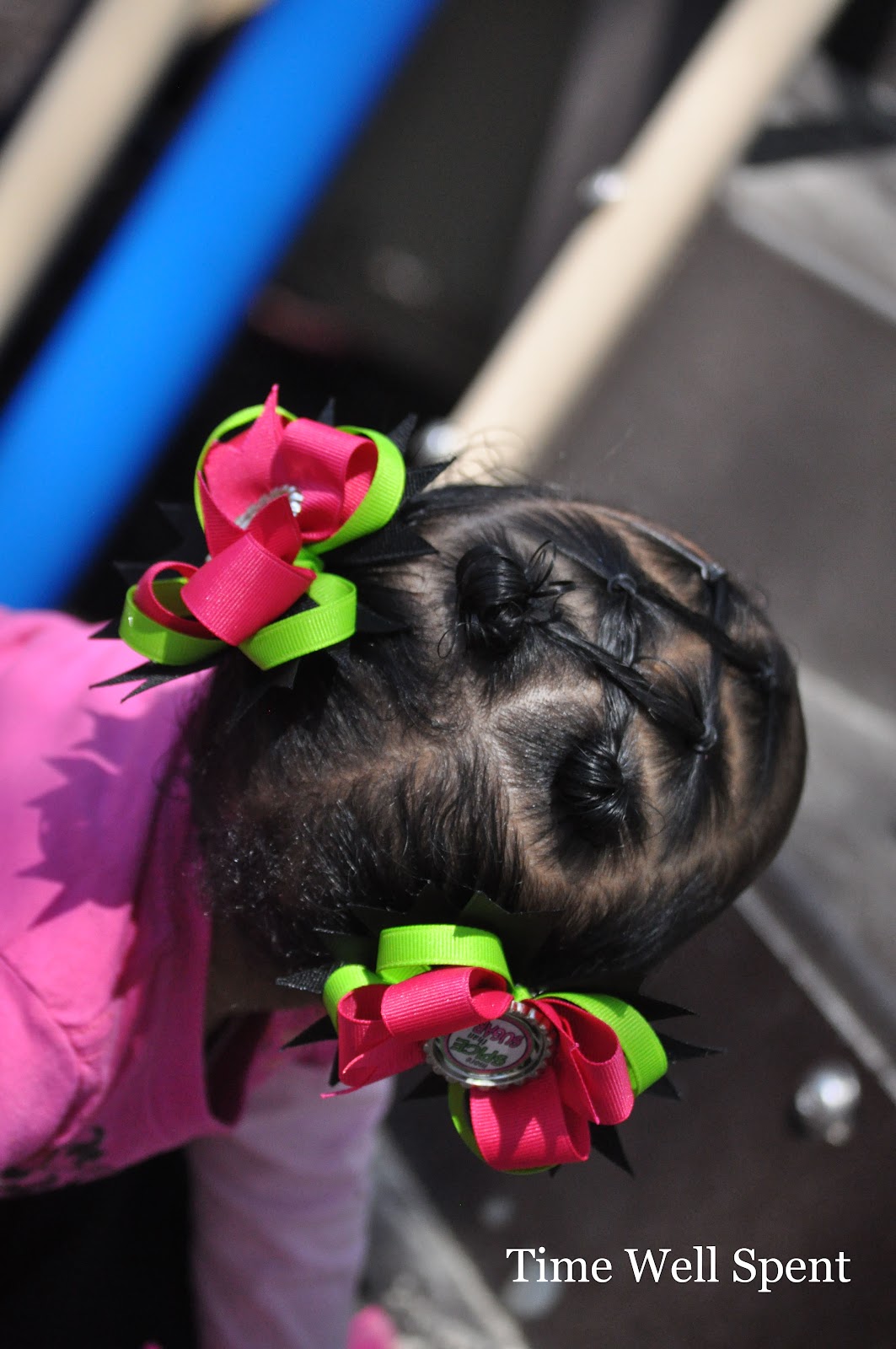 Her cool hair style... I had to give her snack so she could sit still while I do it...She loves to eat and is always in a zone when she does, so she was much too busy eating to pay any attention to what I was going to her hair!